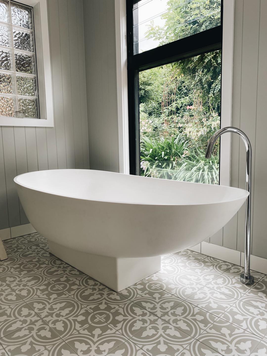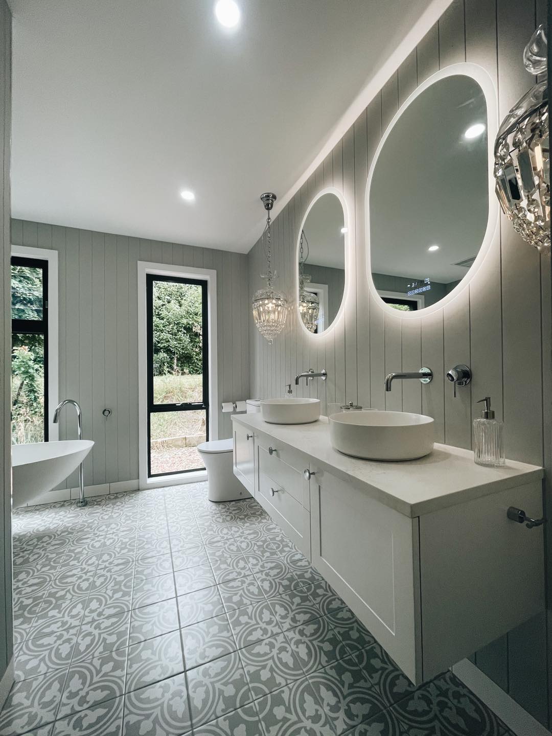 This bathroom was over 20 years old and was in desperate need of an update. The original shower leaked and had caused water damage to the frame and internal linings of the walls. Our client wanted to create an open bathroom with ample light and ventilation. The client also wanted to incorperate VJ board, this took lots of planning to ensure that the fixing of the board to the frame did not damage the new waterproofing. When it comes to water we do not want to give it any opportunity to cause damage within your home. While planning this bathroom for the VJ board we decided to use villaboard as backing so the waterproofing and tiles had a smooth surface to stick to then attached the VJ board on top. We have called this technique the double skin. By using this technique we have created a seemless finish between VJ board and tile.